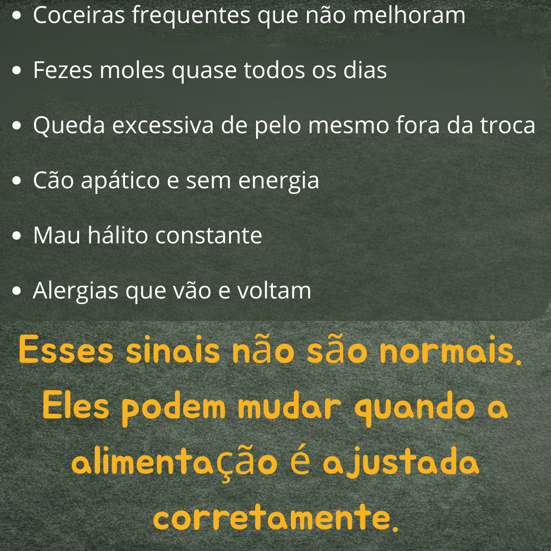 No vídeo abaixo você vai entender por que sinais como coceira, fezes moles ou falta de energia podem estar ligados à alimentação — e o que muitos tutores só descobrem tarde demais.